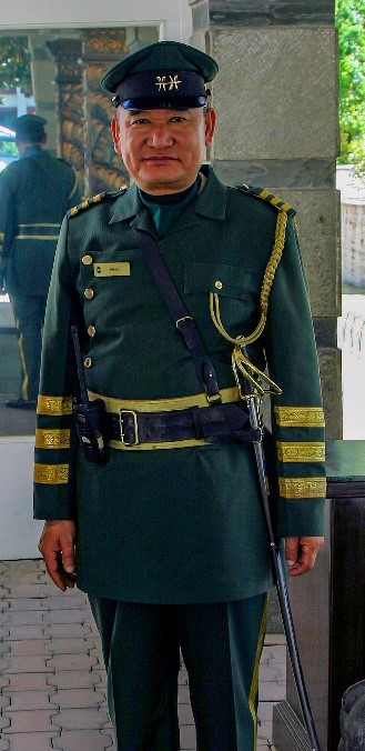 Alojamento no Hotel Annapurna, localizado no coração da cidade. Primeiro hotel de 5 estrelas a ser estabelecido no país, e o seu nome foi uma homenagem à Deusa Annapurna, a Deusa da abundância. Mais tarde percebemos como tínhamos conseguido um hotel de 5 estrelas por um preço ótimo. Estava com muitas obras e o seu ex-libris, a maior piscina da cidade, estava desativada e a ser restaurada. Calorosa receção pelo trintanário do hotel, que como lhe apertei a mão à chegada, fazia questão de vir-me sempre cumprimentar cada vez que nos cruzámos, não sem antes fazer-me continência, sempre correspondida. Para quem desconhece, o trintanário, é o funcionário do hotel, que nos costuma receber, elegantemente uniformizado e normalmente com uma cartola e luvas brancas. O deste hotel até uma espada à cintura tinha.