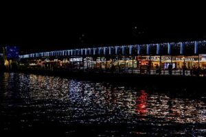Com a chegada ao final do dia à cidade, o princípio da noite pode ser aproveitado para ver a Ponte Gálata iluminada, bem perto a Mesquita Yeni, beber um chá turco nas margens do Bósforo e jantar na Rua Istiklal, onde podem encontrar uns simpáticos restaurantes, com bons preços e boa comida. A evitar os restaurantes para turistas, onde pelo mesmo, se paga 3 vezes mais.