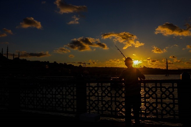 Hora de passar para a outra margem do Corno de Ouro, pela icónica Ponte Gálata, que liga Karaköy e Eminönü. Esta ponte metálica, tem quase 500 metros de comprimento, com passagem de veículos, elétricos e pedestres. Um dos pontos de pesca mais disputados pelos locais, com a ponte sempre repleta de pescadores. No piso inferior, e em toda a sua extensão, dezenas de restaurantes oferecem pratos típicos essencialmente de peixe. Noivos elegeram a ponte como um dos locais para fotos. A ponte é um dos melhores spots para ver e fotografar o pôr do sol.