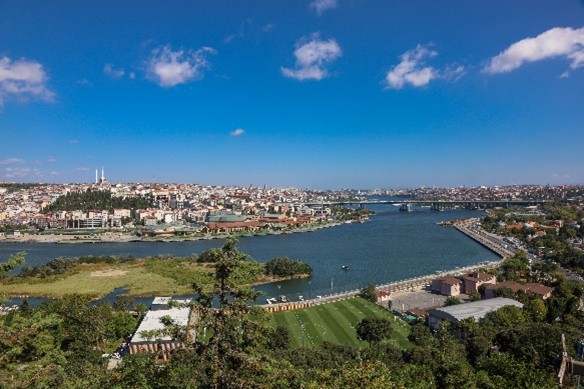 De elétrico ou de barco, passamos ao próximo bairro, Eyüp, já quase no final do Corno de Ouro. Bairro muito conservador e religioso, por ser um destino de peregrinação islâmica. Aconselhamos a que quando cheguem, apanhem logo o teleférico que sobe a colina. Têm vistas maravilhosas para toda a imensidão da cidade, e parem no Café Pierre Loti, e apreciem a vista acompanhado de um bom chá turco. Não se vão arrepender. Pierre Loti era o pseudónimo de um escritor francês, que imortalizou Istanbul em várias obras suas. Sempre que vinha à cidade ficava nesta zona, pelo que o Café tem esta designação em sua homenagem. Depois deste belo momento, desçam pela encosta, atravessando o famoso cemitério de Eyüp, com um significado histórico e espiritual muito vincado, principalmente por estar perto do túmulo de Abu Ayyub al-Ansari, que falaremos adiante. Muitas figuras importantes do país aqui estão sepultadas, e muitas lápides são artisticamente esculpidas. O cemitério ocupa a maioria da colina.