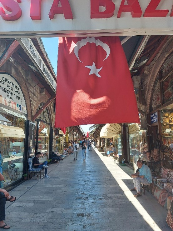 Um pouco mais acima, temos o Palácio Topkapi, Património Mundial da UNESCO, e um dos palácios mais importantes da história do Império Otomano. Visitámos este palácio em 2022, e neste dia tivemos a companhia de um jovem russo, o Sergey, que nos acompanhou grande parte do tempo. Um encontro casual ao pequeno-almoço, transformou o dia deste jovem, viajante solitário, que segundo ele, quando dizia ser russo era mal visto, pela situação muito recente da invasão russa à Ucrânia. Felizmente temos a capacidade de distinguir o povo de um país dos seus governantes, nalguns casos mais “desgovernantes”. Foi bem recebido e para além do dia, partilhou a refeição connosco, um delicioso kebab no bazar, que tivemos todo o gosto em oferecer-lhe.