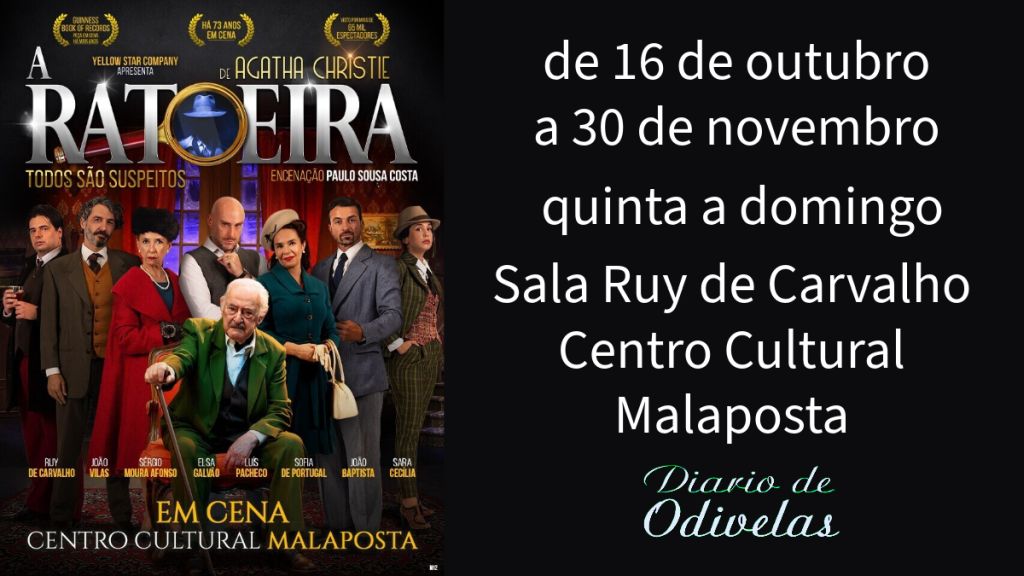 De 16 de outubro a 30 de novembro a Sala Ruy de Carvalho, do Centro Cultural Malaposta, volta a receber a peça “A Ratoeira” um texto de Agatha Christie, com encenação de Paulo Costa.