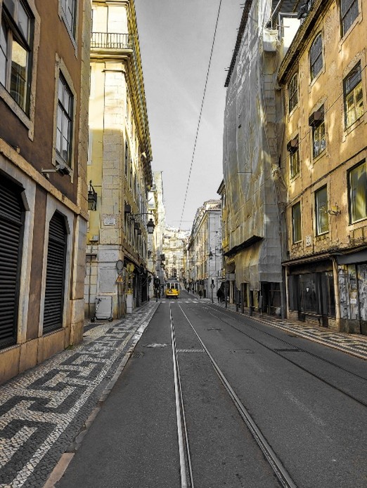As laterais continuam desertas, as lojas encerradas, muitas, infelizmente, definitivamente. Aqui e ali um turista, o que é bom sinal. Nos cafés e restaurantes abertos, vai-se vendo, felizmente, movimento. O dia não está perdido. O elétrico, esse, é que circula deserto.