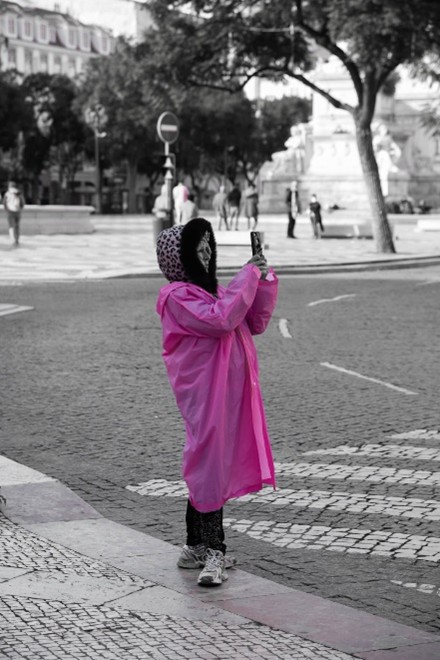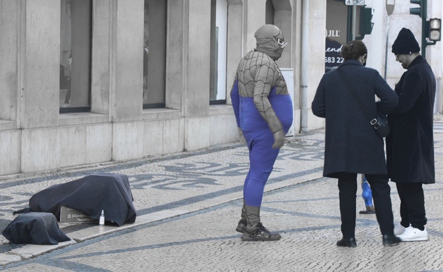 No regresso, a rua já tem mais movimento. A aproximação do acender das luzes que enfeitam a cidade nesta época, vai atraindo curiosos. Para já, o Homem-Aranha, brasileiro, tenta umas moedas com uns compatriotas.