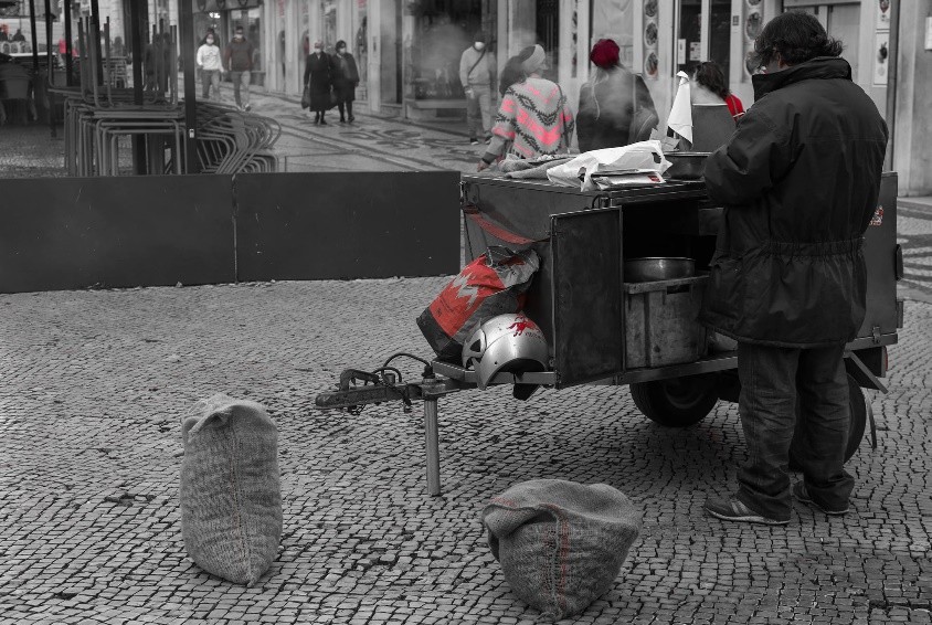 Vendedores da África Subsariana e da América Latina, tentam a sua sorte com carros telecomandados, gorros e cachecóis, mas clientela muito escassa.