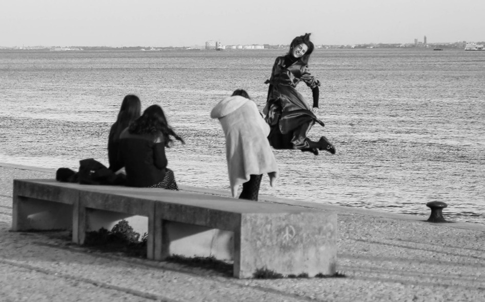 Junto ao rio, um grupo de turistas anima a zona. Top models asiáticos vão evoluindo em poses Vogue, enquanto outras dão saltos para atingir a perfeição na tão típica foto em suspensão.
