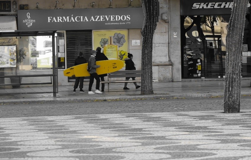 Um outro ouviu falar das “ondas do Rossio” e trouxe a prancha. Teve azar que o mar por aqui estava mesmo flat. Talvez tenha sido presente do Papai Noel.