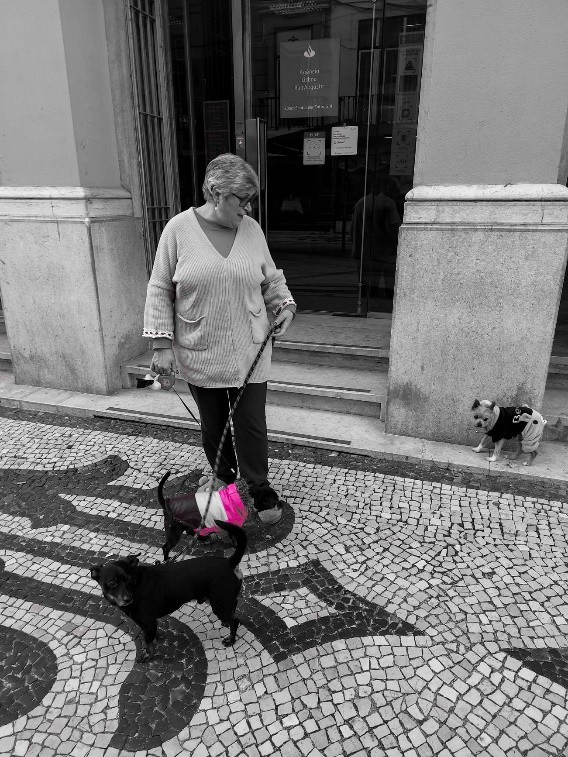 Em direção ao rio, uma senhora passeia os 3 canitos. Metemos conversa. Um é do filho que veio cá passar o Natal. A cadela já está velhota nos seus 16 anos, mas deixam-na levar os cãezinhos para o emprego. Bom emprego! Profissão e empresa não apurada na conversa…