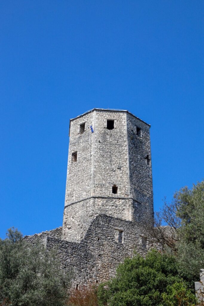 De volta ao bus, e sempre no vale onde serpenteia o rio, paragem na impressionante aldeia medieval, Pocitelj. Construída no século XIV, numa íngreme encosta, oferecia uma posição defensiva natural, sendo uma fortaleza militar e ponto de controlo importante do rio, quer na idade média, quer no período otomano. Quase toda a aldeia é de construção tradicional otomana, com casas de pedra e telhados de placas de xisto. Com pouco acesso a veículos, mantém a sua atmosfera medieval, e dos pontos mais elevados tem vistas muito bonitas para a natureza que a envolve. Numa praça, à entrada da aldeia, simpáticas senhoras vendem pacotes de amendoins e alperces secos, de um sabor excelente.