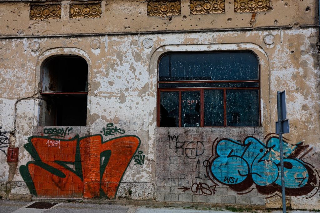 Pela cidade, ainda se vêm as marcas da guerra em muitas paredes. Durante esse período, a cidade, que era multicultural, foi dividida pelo rio, ficando na cidade antiga os bósnios muçulmanos e do outro lado os croatas, levando à destruição da ponte antiga pelos croatas, em 1993. Milhares de pessoas foram deslocadas das suas casas.