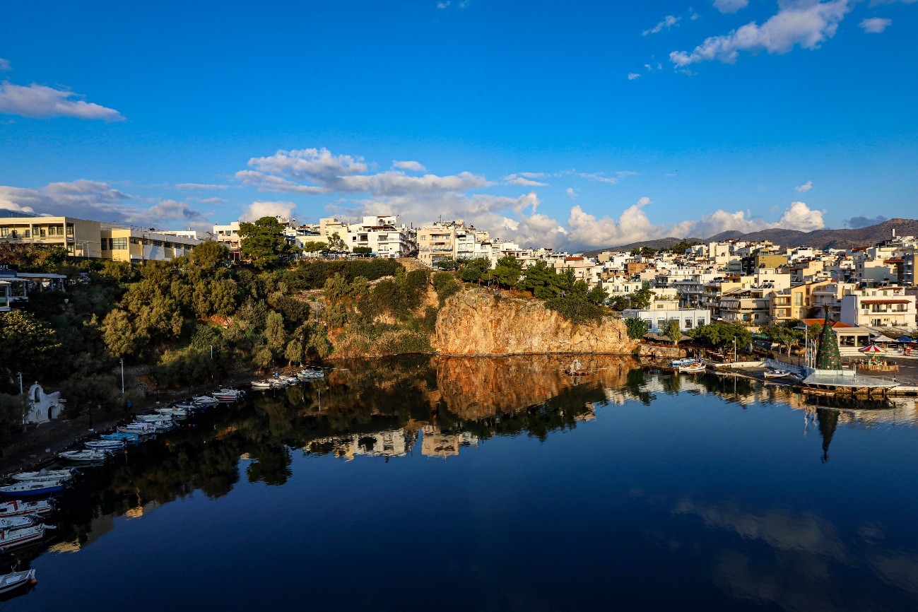 Visita ao mosteiro Moní Faneromenis, onde um padre, muito simpático, nos contou a história do mesmo. A igreja ocupa uma antiga caverna, com uma longa história. Um ícone da Virgem Maria foi descoberto nesta caverna há muitas centenas de anos, por um pastor que procurava uma ovelha. Levou o ícone para sua casa e o ícone voltou sozinho para a caverna. Isto aconteceu por 3 vezes. Passou então a ser considerado um lugar sagrado, e com a divulgação do acontecimento, monges começaram a viver aqui, ocupando várias grutas que existem nestas encostas, chegando a ser quase 100. Daí nasceu o mosteiro, no século XIII. É um local de grandes peregrinações a 15 de agosto. No interior da igreja existe uma fonte, considerada sagrada e associada a curas milagrosas por muitos fiéis. Por duas vezes o mosteiro foi incendiado, no período da ocupação otomana, mas sempre recuperado e melhorado. Dada a sua localização, num sopé de um desfiladeiro escarpado, e com uma vista tremenda para a Baía de Mirabello, foi também usado como forte.