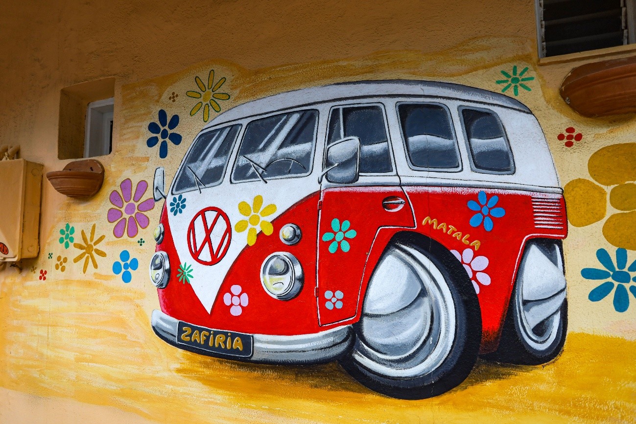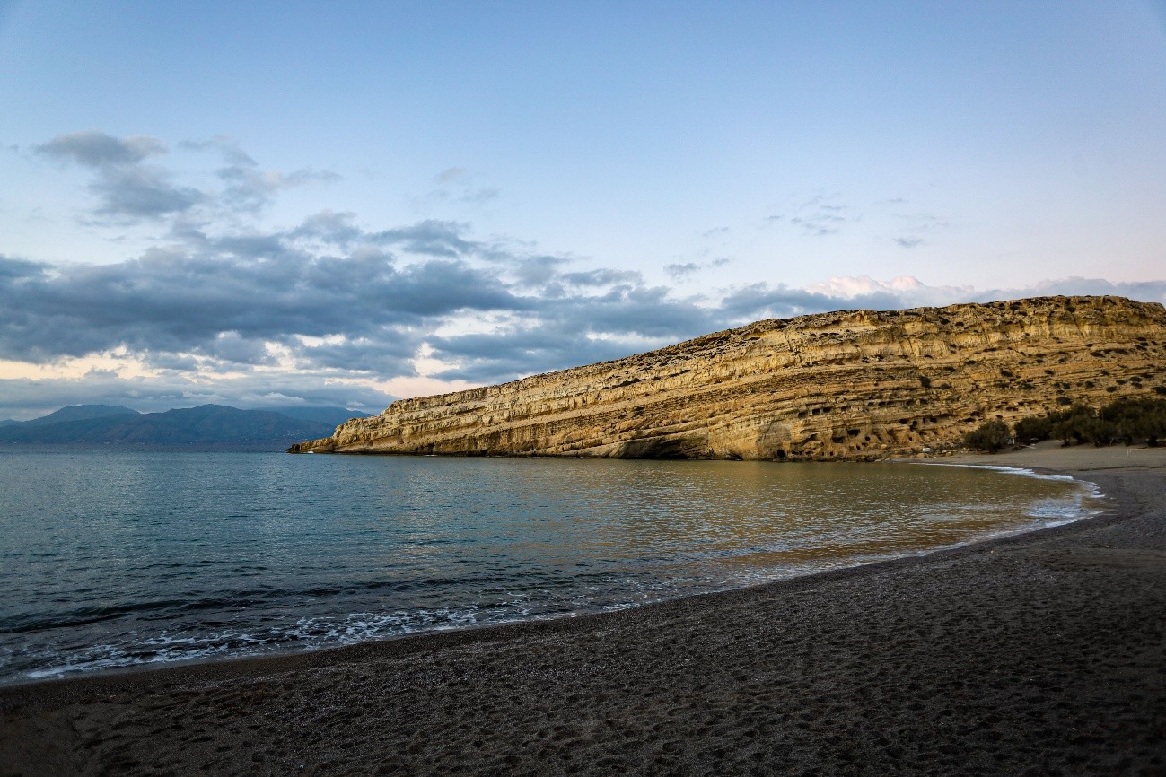 Matala é uma aldeia costeira, no sul de Creta, famosa pela sua praia de areia dourada e falésias de arenito, onde grutas foram escavadas. Inicialmente foram utilizadas como túmulos na Idade do Bronze, passando também com essa utilização para o período romano. Matala saiu do anonimato para o turismo, com a contracultura hippie na década de 60. As grutas passaram a ser habitação de centenas de hippies que para aqui se deslocaram. Cat Stevens, Bob Dylan, Joni Mitchell, foram nomes que por aqui passaram. Esta última faz menção à localidade, na sua canção Carey, com a frase “sob a lua de Matala”. Anos mais tarde, os hippies foram gradualmente sendo expulsos, mas Matala manteve sempre essa atmosfera, continuando a ser um local de turismo alternativo.