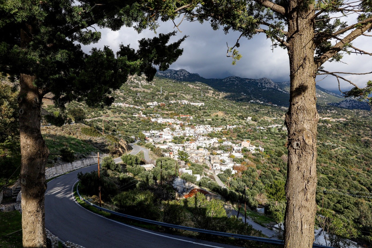 Continuamos pelas montanhas até voltar a descer para a costa, na direção do destino do dia, Matala. Entretanto, na viagem, busca-se alojamento, e o booking tem poucas opções. Quase tudo encerrado. Vaga num alojamento local, caro para o que era, mas não havia muitas mais opções.