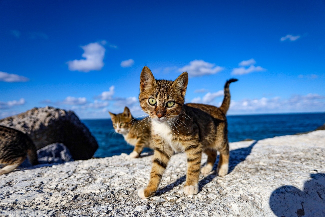 No regresso ao parque de estacionamento mais de uma dezena de gatos nos aguardava. Mais uns sticks. Os gatos abundam por toda a ilha e são bem tratados por toda a população. Certamente por influência bizantina, veneziana e otomana, os gatos são bem-vindos em todo o lado. Os gregos criaram a tradição de respeitar e cuidar dos gatos, que maioritariamente são de rua. Atualmente fazem parte da “paisagem” das ilhas gregas.