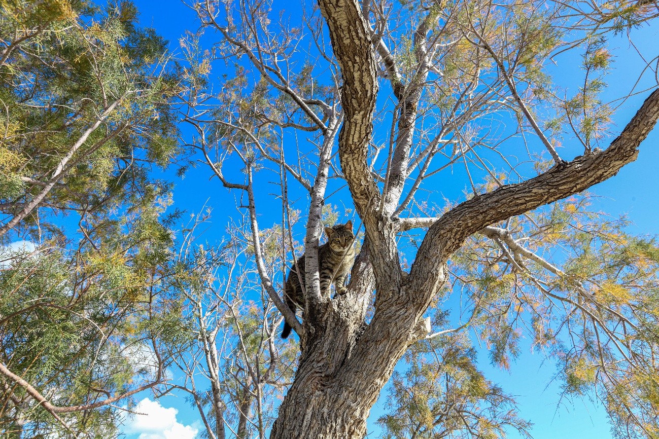 Um simpático gato foi acompanhar-nos pelo passeio no areal, e deliciava-se com as festas durante as paragens que íamos fazendo. No regresso, um cão ainda cachorro, foi-se meter com ele, e o gato valentemente ripostou. Iniciaram uma longa corrida até à árvore mais próxima, e o cão perdeu.