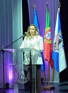 Hugo Martins, Presidente da Câmara Municipal de Odivelas, abriu a sua intervenção, após os cumprimentos, com a citação de Teresa Hora que utilizámos como subtítulo, referindo, “E, de facto, a sua elasticidade, o seu inconformismo e a forma como cuida, como trabalha e como se reinventa todos os dias, constituem uma inspiração permanente para todos nós”.