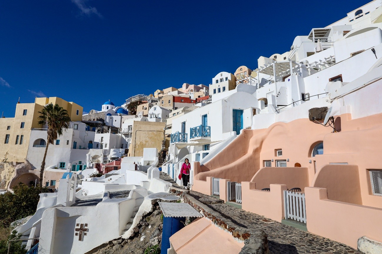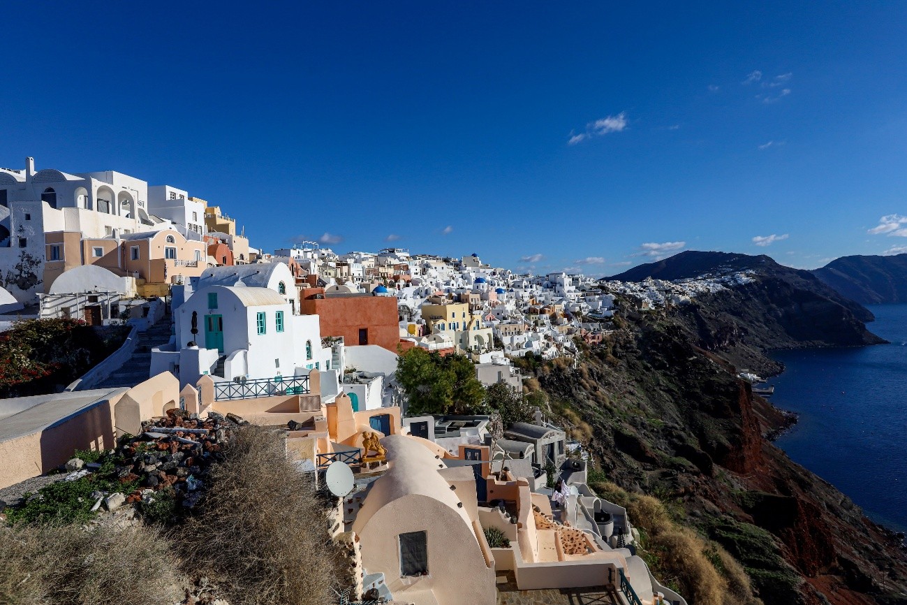 Iniciámos por visitar Oia, talvez um dos locais mais fotografados da Grécia, e sempre apinhado de muitos e muitos visitantes, que freneticamente, procuram os melhores ângulos, para as Insta fotos. Mas, de inverno, espantem-se, e fiquem com inveja, Oia estava deserta e absorvida de uma luz fantástica! Livremente e sem qualquer tipo de confusão, pudemos visitar calmamente a vila, apreciando devidamente a sua bela arquitetura e as suas belas vistas para o Mar Egeu.