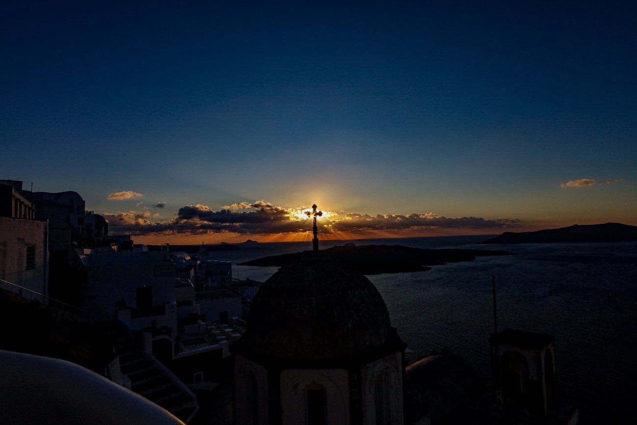 O Museu Arqueológico encerrado, pelo período do ano, não permitiu a visita, que parece ser bastante interessante, uma vez que guarda os lindos frescos encontrados em Akrotiri. O branco foi passando lentamente a um dourado cada vez mais intenso, e chegou o tão aguardado pôr-do-sol, que sem nuvens no horizonte, não foi tão espetacular como seria de esperar, não deixando de ser lindo.