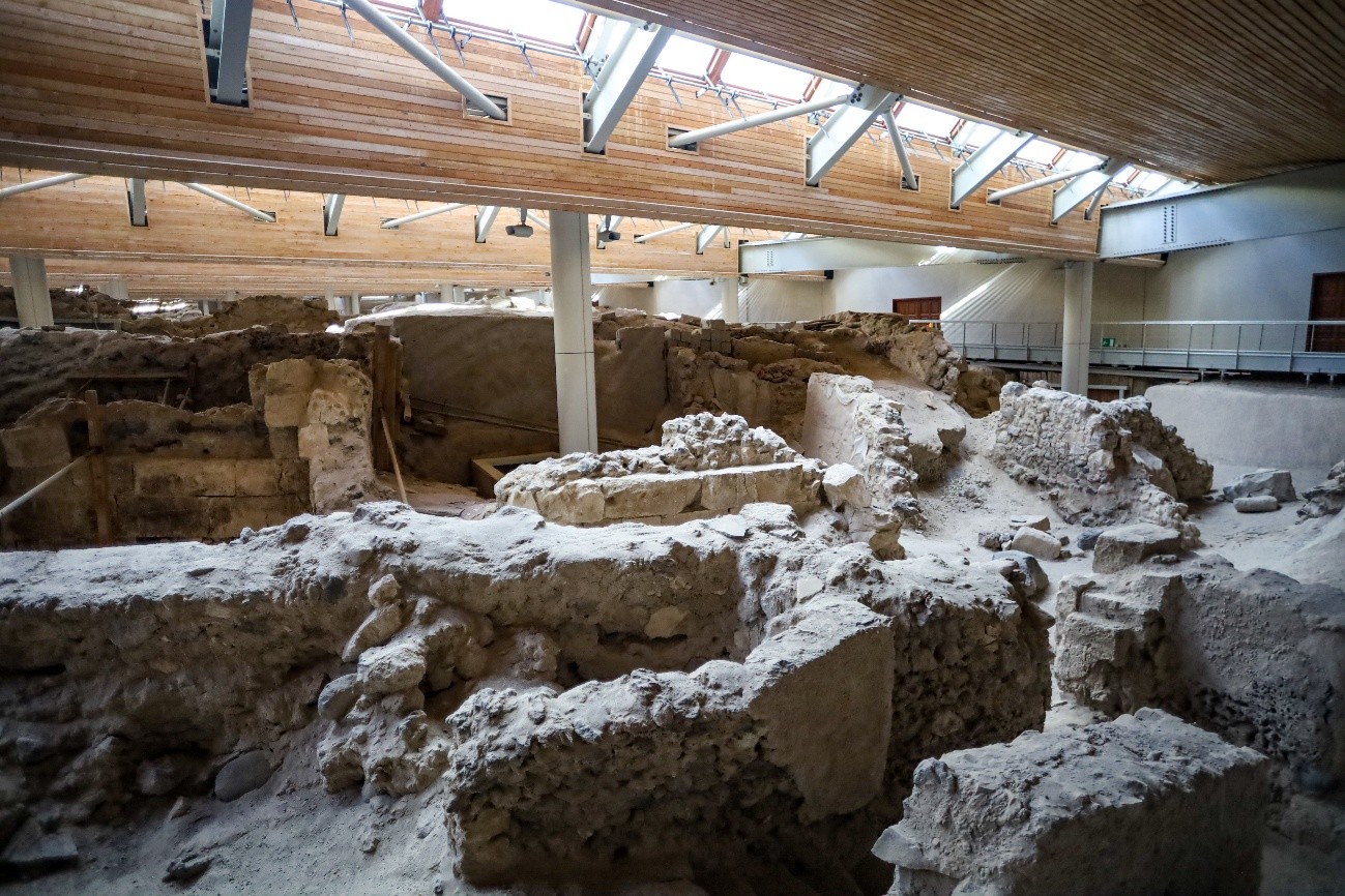 A parte da tarde foi dedicada a visitar a antiga cidade de Akrotiri, soterrada por uma grande erupção vulcânica por volta do ano 1600 a.C. A Ilha de Santorini foi formada por atividade vulcânica durante milhares e milhares de anos, sendo que o vulcão que a formou ainda está ativo, com uma erupção algo recente, em 1950.